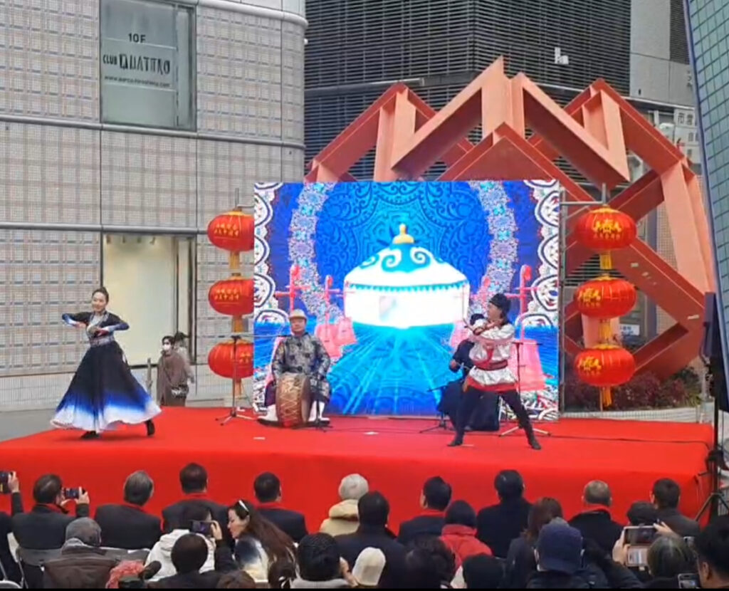 ステージでは、中国の獅子舞や変面、民族舞踊などが披露され、会場では中華料理の屋台もたくさん出店しており、大いに盛り上がっていました。